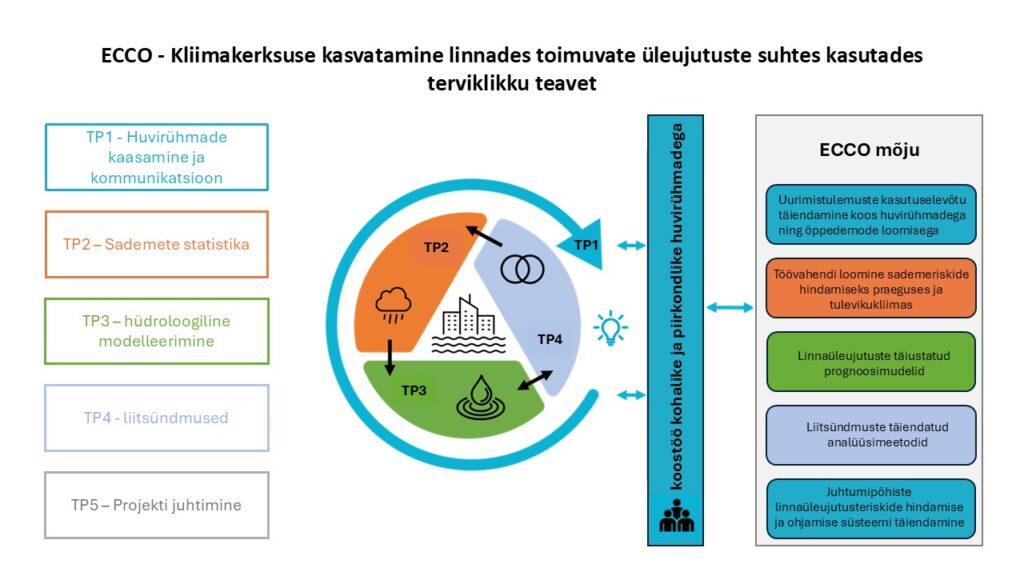 26.09 2025 toimus ECCO projekti kasutajakohtumine, kus osalejatele esitati neli ettekannet. Kohtumine pakkus võimaluse jagada teadmisi, arutada projekti arenguid ning saada ülevaadet valdkonna uusimatest tähelepanekutest. Samuti rääkis Mait Sepp teemal „Liitsündmused (compound events) – uus vaatenurk üleujutuste statistikale“